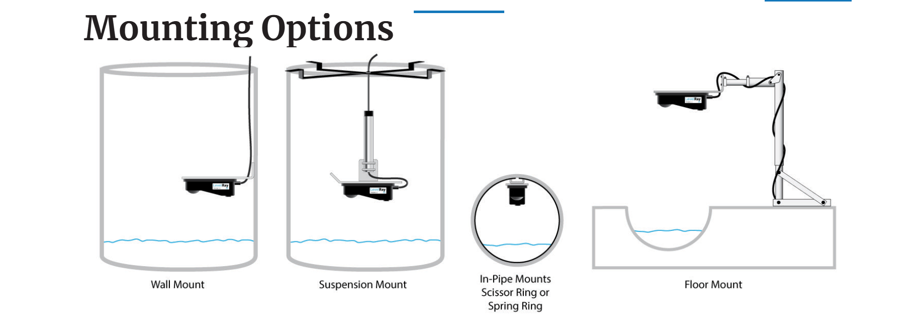 In addition to working as a non-contact sensor using radar waves, the LevelRay’s rugged design and IP68 protection allow it to withstand being submerged. When a LevelRay is installed with the optional integrated pressure sensor, level measurement switches from radar to the pressure sensor upon submersion and continues providing level readings while submerged.